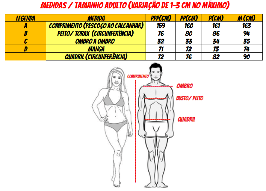 - SUGERIMOS PEDIR UM TAMANHO MAIOR DO QUE USA NORMALMENTE, EXEMPLO SE USA M PEÇA UMA G. CASO FIQUE NA DÚVIDA SOBRE AS MEDIDAS, É MELHOR PASSAR ALGUNS CENTIMETROS QUE É POSSÍVEL CORRIGIR NA COSTURA SE NECESSÁRIO.