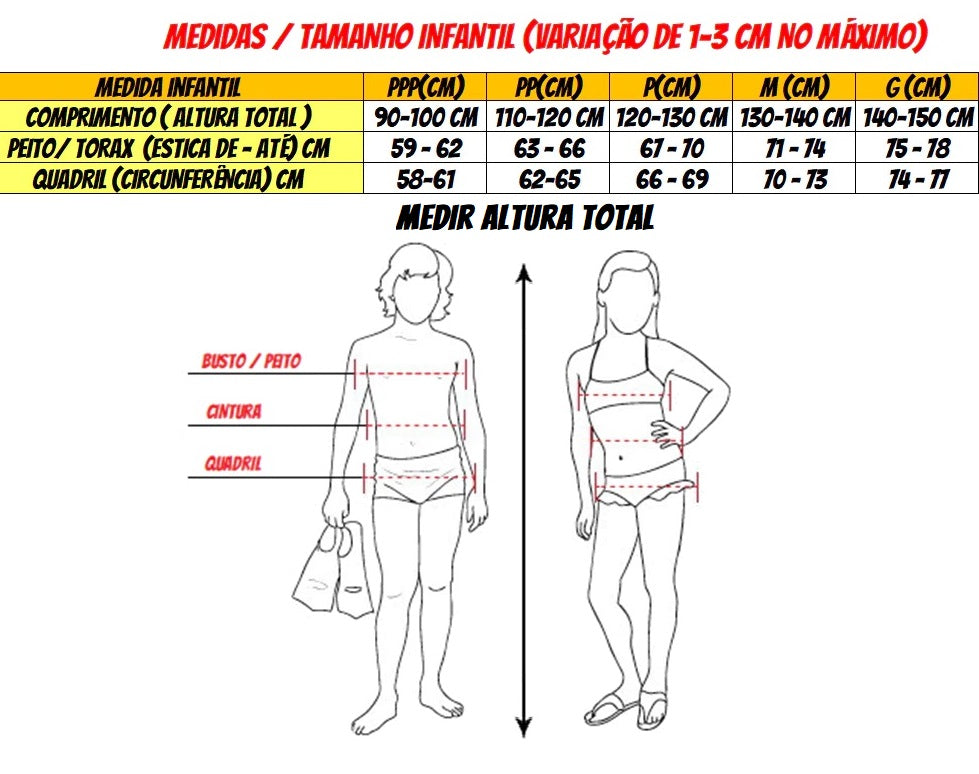 TABELA DE TAMANHOS ( VERIFIQUE CONFORME INSTRUÇÕES ABAIXO )