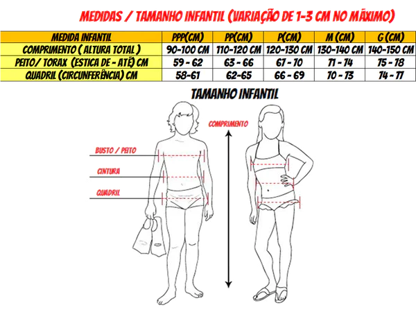 TABELA DE TAMANHOS ( VERIFIQUE CONFORME INSTRUÇÕES ABAIXO )